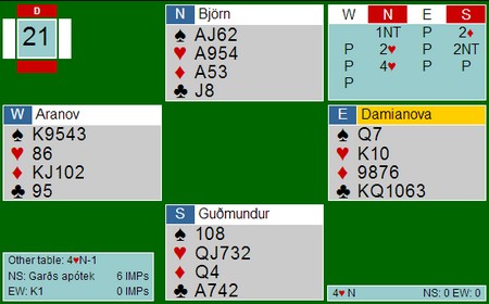 "The Craziest" ligger best an på Island når det er fem runder igjen av Island sin lagturnering. Marianne Harding, Odin Svendsen, Boye Brogeland og sponsor Simon Gillis har starta fint. Tromsø (Marstrander), Bergen (Bakke) og Stamina (Mo) er også der oppe. Turneringa overføres på BBO.