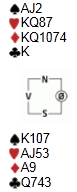 når jeg som makker til den sterke hånda har spar og ruter i en positiv hånd. Du må ikke komme og fortelle med at du har noe bedre enn dette når du skal melde slike hender.