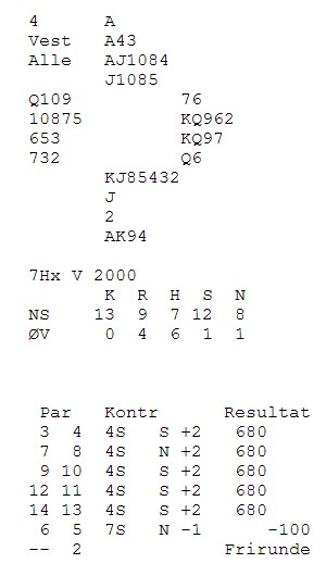 Helge startet med kløver og da var det 300 fine inn på ØV. 4sp kan vel vinnes selv med kløverstjelinga, men to dobla beit var alle poengene. |