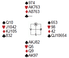 Denne gangen var det rett å gå på en gang til over 3NT, selv om 6ru ikke er helt opplagt i utgangspunktet. Aktuelt vil du slippe å gjette hjerteren i slem fordi du spiller kløver mot damen først og så en liten fra hver hånd. Når esset kommer på, forsvinner hjerteren i øst.