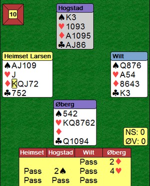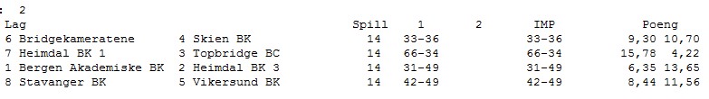 Det betyr at Norge må kjempe med Tyrkia, Sverige, Bulgaria og Danmark om 5. - 8. plass. Det er akkurat som for åpen- og veteranklassen, en 6. plass eller bedre gjør at du vinner billetten til Bermuda Bowl (VM). Det er Norge mer enn kapable til, men man må være skjerpet hver dag, hver kamp, hvert spill og hvert kort. Får Norge til det er det gode muligheter for våre jenter!