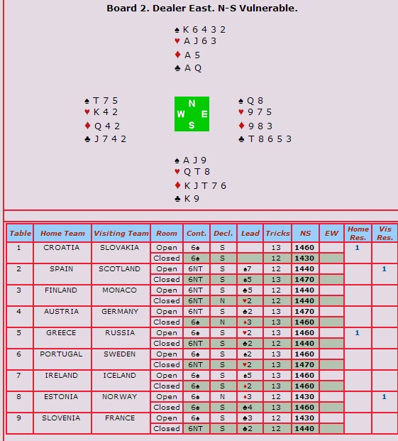 Syd servet en liten kløver, og tieren vant. Så fulgte hjerter til damen og hjerter ti til kongen og esset. Nord vred spar, og Christian Bakke tok fem stikk i den fargen. Blindemann holdt tre ruter og dobbel hjerter. Ruter ti ble dekket med knekten, og Christian brukte esset! Hjerter 9 satte inn Nord som var nødt til å gi bordet et rødt stikk og kontrakten. At det ble overstikk spilte egentlig liten rolle. Det ble 11 imp uansett. Snill sparsits men nydelig spilt!
