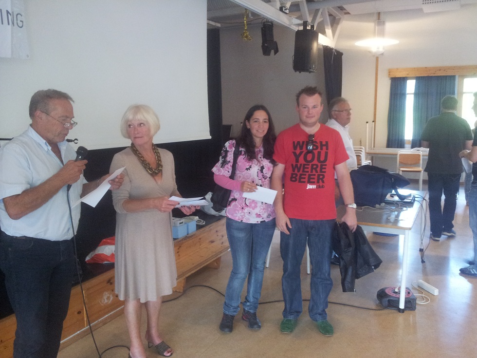 Vicky og Even får sin premie av Aase og Ivar.