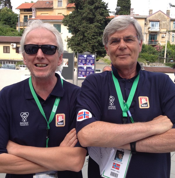 I spillet under fikk alle tolv eller tretten stikk. Espen Lindqvist fikk bare elleve og da må vel han være veldig dårlig? Det er Petter Haram som har sendt meg en mail som forteller at Norge fikk ruter fem (!!) i utspill. Den gikk til liten, tier og ess. Espen prøvde både kløver mot kongen og tre ganger hjerter til stjeling, men da ingenting av det gikk bra skjønner du helt sikkert hva som skjedde siden Espen har ruter 9 på hånda.