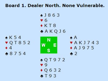 Jeg åpnet noe heldig med en ruter og dermed fant ikke Vest noen bedre melding enn pass. Helge i Nord svarte 1 hjerter og Øst meldte 1 grand. Jeg sa pass og nå tok Bjerregård en lang tenkepause.