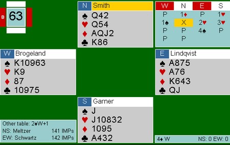 Som jeg har sagt flere ganger de siste to dagene, er det krevende å spille med de beste. Jeg er fristet til å si at de i enkelte spill gjør det unødvendig vanskelig og setter store krav til makker. For meg er det lite trøst i å vinne diskusjoner etterpå når makker ikke forstå hva jeg mente med meldinga mi, uansett hvor bra den nå skulle vært. En bånn er og blir en bånn uansett hvem i makkerparet som skulle hatt "rett". I bridge er det lite sannheter og når gode spiller har til dels svært ulik oppfatning av hva fasiten er, bør en kanskje leite etter enklere løsninger?