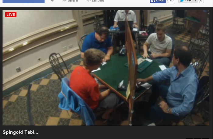 Syd åpnet med 1hj, Boye i vest meldte inn 1sp (?), 1NT fra nord, 2hj i syd og pass rundt. Kløver fire ut til esset mitt i øst.