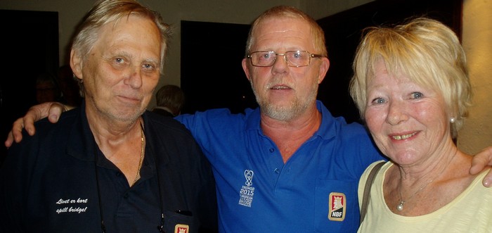 Vi har den "avtalen" at under spillinga skal vi ikke si noe som kan oppfattes negativt til hverandre. Det er viktig å bygge makker, sånn at han får følelsen av å være flink,. Jeg ser imidlertid at han smiler til meg på en litt underlig måte, nesten som han sliter med å holde seg alvorlig.