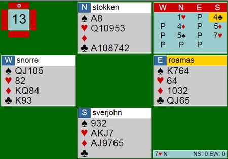 Jeg frir meg i ruter og claimer i det jeg venter et anerkjennende blikk fra makker, Roald Mæsel.