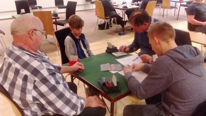 Jeg startet med ruterdamen som "selvsagt" sto. Jeg kunne ikke se enda hvem som hadde dobbel ruter, men jeg visste makker hadde spar esset eller hjerteresset. Skift til spar i tilfelle spillefører måtte gjette den fargen. Knekten vant, men på hjerter fra bordet gikk Ronny Kollnes opp på esset, spilte ruter til mitt ess og ruter til stjeling.