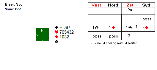 Oppgave 1: Hva melder du som øst over 5 ruter?
