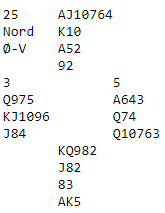 Det handler altså om å tippe hjerteren. I teorien er det en ren 50-50 sjanse du velger mellom, enten damen foran i hjerter eller esset foran. Men det er en variant som øker sjansen for å gjøre riktig. Ikke glem at det er nord som er giver i dette spillet, og han åpner med 1 spar. Dermed blir NORD spillefører, altså er hans hånd skjult. Ser du hvordan det har noe med saken å gjøre?