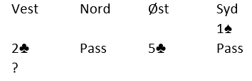 Et eksempel fra Torsnes BK for 14 dager siden, Vest giver med Nord- Syd i faresonen: