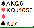 Oooops, tenkte sikkert øst da det raskt gikk pass rundt på hans 1 hjerter. Som du ser er både 4 spar og 4 hjerter enkle utganger å vinne. Det står faktisk enkelt i 5 spar, og det kan se ut som om det er elleve stikk i hjerterkontrakt også.