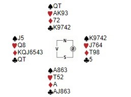 Vest var da innspilt med bare ruter og J5 i spar igjen. Ruter ville være til dobbelrenons, mens spar lot Stig legge tieren som trakk kongen. Et nydelig spill! Nøkkelen var å spille hjerter til esset tidlig, slik at det ble vanskelig for Vest å avblokkere damen.