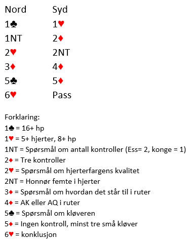 Merk at denne slemmen er vanskelig å melde etter vanlig system, for eksempel 15-17 grand fra nord. Litt tilfeldig er det nok, men om et «Naturlig»-par melder 6 hjerter med disse kortene vil den normalt komme på nord sin hånd (etter overføringssvar på 1 NT) med fare for sparutspill gjennom syd sin ugarderte konge.