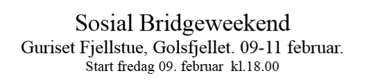 Godt nytt år til dere alle, og velkommen til et nytt spennende bridgeår!
