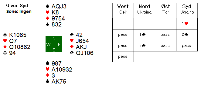 Men slik det satt var det i teorien en bet, med mindre øst finner på å spille ut kløver. Og det var nettopp hva Espen gjorde. Hvorfor?