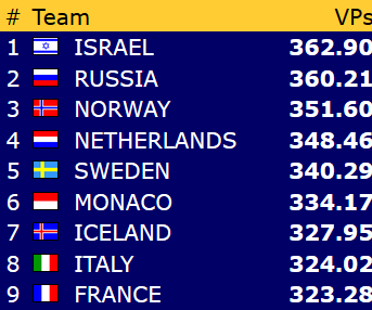 Spillefører stakk med esset, tok 2 runder spar, spilte hjerter til kongen og kastet bordets siste hjerter på spar 10. Nå var det bare å stjele en hjerter med kløver dame, og trekke ut trumfen for 12 stikk og 920 til Sverige.