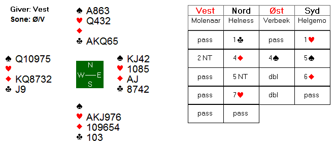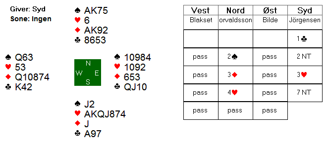 Som Christian påpeker er nivået i veteranklassen høyt. Selv om vi stiller et meget slagkraftig mannskap, vil det på ingen måte være slik at Norge kan spasere seg til noen topplassering. Men vi stiller med tre solide par. De to brødreparene Mæsel og Stabell har mange år bak seg som makkerpar og er dermed godt samspilte. Bakke – Marstrander har ikke like mange spill sammen, men de har som nevnt et knippe nasjonale mesterskap de siste to sesongene, og det ryktes dessuten at de har trent daglig på BBO de siste to ukene før mesterskapet.