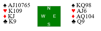 Legg merke til at i denne varianten har Ø/V samme samlede honnørstyrke som da spillet forekom. Men ser det slik ut som det her er slem nedlegg! Og da finnes slemmen ganske enkelt ved at vest over 4 ruter melder 4 hjerter som lover at han kan stoppe kløveren (!) - fargen øst hoppet over da han sa 4 ruter!