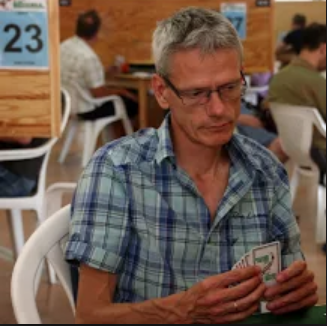 Her åpnet De Wijs med 1 grand som vest (9-12), og det var Livgård sin tur som nord. De norske spillerne vet jo at det er farlig å være for passive mot slike grandåpninger, men det kan være farlig å være for aktiv også. Nord har lyst til å melde inn, men skulle gjerne hatt en bedre farge, eller sekskorts farge for å melde i andre hånd i ugunstig. Øst kan jo ha veldig sterke kort og syd ingen ting. I så fall blir det fort et blodbad om nord melder inn. Nord passet.