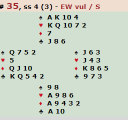 Uansett, dette er et vanskelig spill i slem, og det sier litt om det høye nivået at bare en spillefører endte med å ta kun elleve stikk i hjerterkontrakt, og det var i utgang. Det var 22 par med i finalen, og av de elleve N/S-parene fikk altså resten av dem tak i tolv stikk, fire av dem i 6 hjerter for en massiv +1430 som ga 91 IMP!