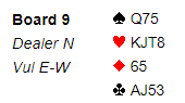 Men makker spilte etter disse meldingene ikke unaturlig ut ruter 9. Da var det ti toppstikk og +420 til motparten.