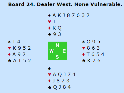 Spillet ga altså 10 IMP til Finland, en litt sur avslutning på kampen. Seks av 30 lag noterte utgang her, resten gikk bet i 4 spar unntatt to par som gikk to bet i 5 spar.