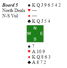 1 x 7 kløver doblet med en bet: -200: Ja, hvis syd var renons i spar og hadde hatt en kløver til så kunne det kanskje blitt vunnet storeslem med to ess borte...