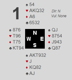 Jeg har ikke i skrivende stund informasjon om hvordan meldingene gikk i Norge sin kamp. Ved noen bord åpnet kanskje vest med 3 kløver i tredje hånd, og i så fall er det ikke lett å melde med styring.