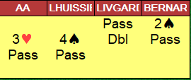 Dette er en glimrende slem spilt av nord. Kun en svært uheldig sits i trumf med alle tre trumfene bak nords hjerter beter 6 hjerter, eller at det sitter helt vilt og de får en stjeling i en farge. Spilleføringen var en formalitet, +980 til Norge.