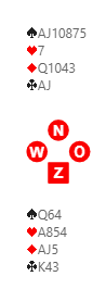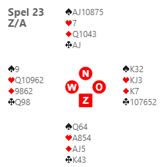 De endte i 6 ruter, en god slem. Hvis det hadde vært rutertaper ville det fortsatt vært en god sjanse, kløverfinessen.