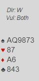 Min lagkamerat fant altså den vinnende meldingen, men dessverre kludret han det til i spilleføringen og gikk bet, -100. Ved det andre bordet spilte vi 3 ruter med +110, uavgjort spill.