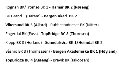 Trekningen for sjette runde er gjort og vinnerne av disse kampene får spille om NM-medaljer i årets LAGFINALE (mine favoritter er uthevet):