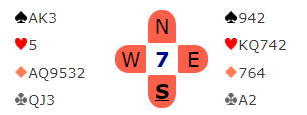 Det kom trumf i utspill fra øst. Det kan se ut som om hjerteren kan godspilles siden den sitter 4-4. Men det blir trøbbel. Selv om fargen etter hvert kan bli godspilt vil nord bli veldig «kort og rar» i trumf siden han jo må frem og tilbake mellom hendene, og godspilt hjerter kan neppe hentes til slutt.