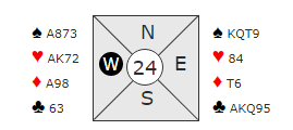 Noen vil kanskje si "men han har jo minimum, 15 poeng". Å se det slik er dårlig kortvurdering i dette tilfellet hvor det drar seg mot fargekontrakt. Vest har KUN stålhonnører, ess og konger som er så viktig i trumfkontrakter. Dette er definitivt ikke minimum i denne konteksten!