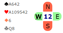 Merk at spillefører har fått slått vekk hjerter ess, og derfor er det kun ett inntak til nord nå. Hvis sparen sitter 6-0 må han ha fire kløverstikk for å få ti stikk, og da må det tas to kløverfinesser, først en dyp en med liten til nieren!