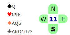 Det gjorde vest da hun hoppet til 3 grand som sier «jeg har så mye at vi skal i utgang samme hvor svak du er». Øst passet.