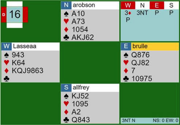 Her var 3NT enkle ting, ni stikk fra taket uten noen finesse.