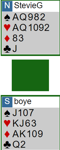 Siden kløverfargen satt behagelig 3-3 var ikke 7NT til å rokke med 2+1+3+7=13 stikk. SKEIDAR +2220, ganske heldig må de være lov å si. (En kuriositet, syd spilte ut kløver 6...og om nord hadde hatt nieren fjerde ville det kostet N/S sin kløverstopper")