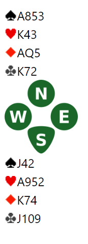 Av de 40 parene som satt N/S melder antagelig omtrent noe over 30 par etter ganske standard, naturlig system, og det startet 1 ruter-1 hjerter ved de bordene. Kun noen få på syds plass valgte 3 ruter som sin andre melding. Noen flere hoppet til 3 kløver, men omtrent 80% sa 2 kløver!