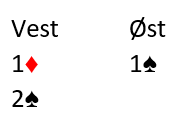 Med dette er 2 spar en god melding. Det er blink om svareren har femkorts farge, og om svareren er svak er det greit så godt som alltid selv om han har fire-korts spar. Å spille 2 spar med 4-3 i trumf kan godt fungere veldig bra med slike kort og de unngår en dårlig 1NT eller 2 kløver-kontrakt.