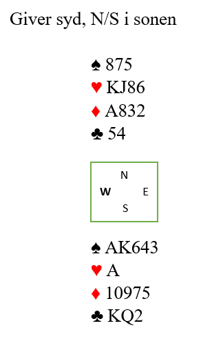 Det kan bli to hjerterstikk hos nord. Det som må til er at hjerter dame sitter singel (lite sannsynlig), dobbel eller tredje. Og slik satt det: