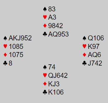 Med syd som spillefører, kløveren jevnt fordelt og ruter konge beskyttet går det ikke å få betet 4 spar. Gunn vant ganske greit kontrakten, +590 til Norge.