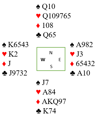 Det ble derfor en høyst uforjent +2210 hvor lilleslem i hjerter eller spar er korrekt. Både en selv og lagkameratene er selvsagt fornøyde med den heldige scoren, men det er ingen grunn til å være stolt over det. Og da vi scoret opp kampen ble det en slags rettferdighet, N/S ved det andre bordet hadde også meldt den for harde storeslemmen - uavgjort spill!