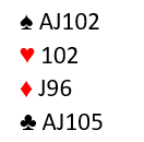 Da vi fulgte kampene på RealBridge forleden, kom det i mange kamper flere sånne marginale avgjørelser. Vi så en spiller som passet med A109-femte i spar, 5-3-3-2 fordeling og 11 poeng. Greit nok. Men like etter åpnet samme mann med 5-3-3-2, også 11 peong, da hadde han kløverfarge. Det var riktignok en god kløverfarge, så jeg ville åpnet med begge de hendene. Men om man måtte velge åpning med kun en av de to hendene med 5-3-3-2 og 11, så tror jeg det ofte er den med sparfarge - «boss fargen» - det har mest for seg å åpne med.