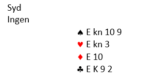 Vest spilte ut kløver. Geir vant med damen fulgt av spar dame som fikk løpe til kongen hos vest. Det kom mer kløver.