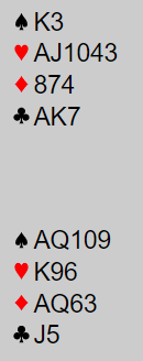 Lag Helmax spilte altså 3NT og fikk tretten stikk.