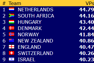 Norge - Sverige 13,04 - 6,96 (IMP-score: 47 - 36)